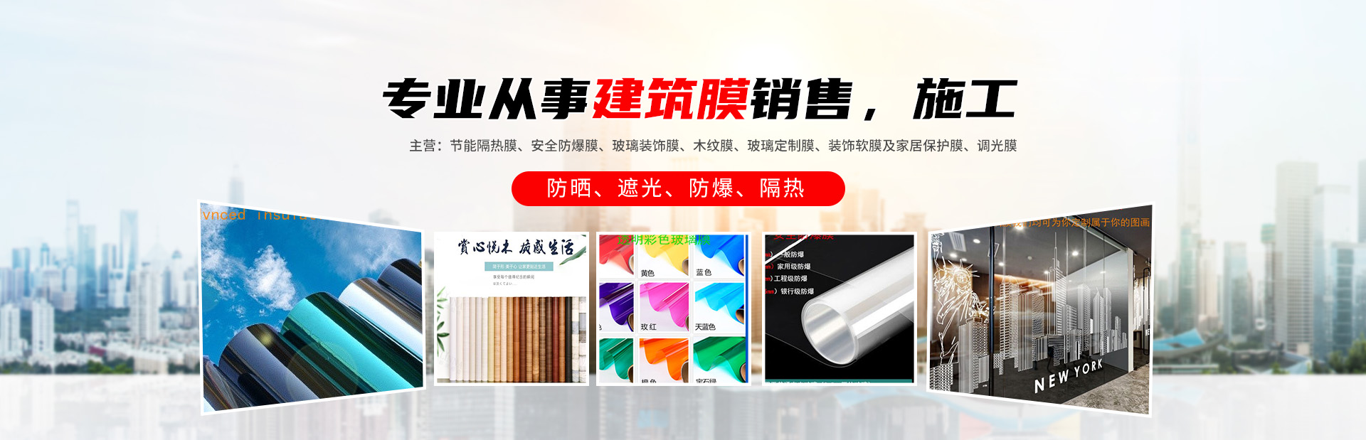 成都市方園環??萍加邢薰臼且患覐氖陆ㄖAやN售,施工于一體的專業化公司。 公司主營各品牌建筑玻璃功能膜(保溫隔熱膜,節能膜,調光膜,太陽膜,安全防爆膜,磨砂膜,彩色玻璃膜,素色膜,木紋膜等